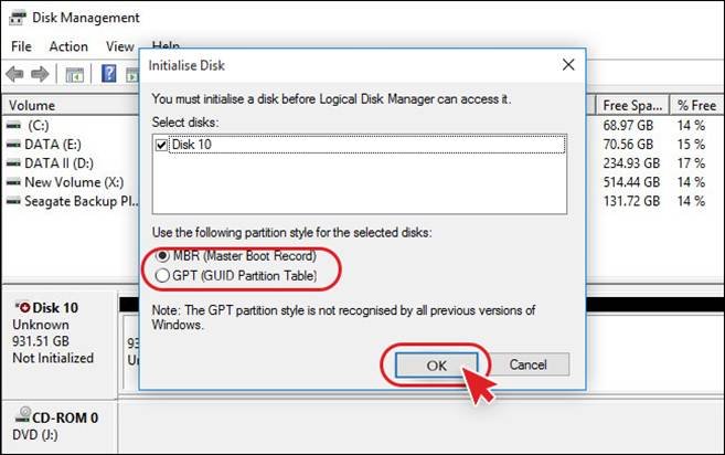You may try to initialize hard drive to fix the ‘New Hard Drive Not Showing Up on Windows 10’ with the help of the following steps: