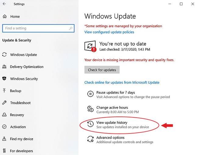 a. Open Settings and follow Update & Security > View update history. (See Image 17)