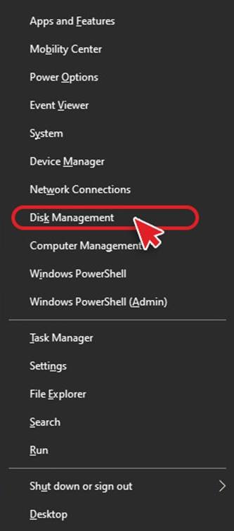 a. Press Windows + X and select Disk Management.