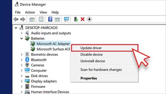 b. Right-click on the device, and click Update driver.